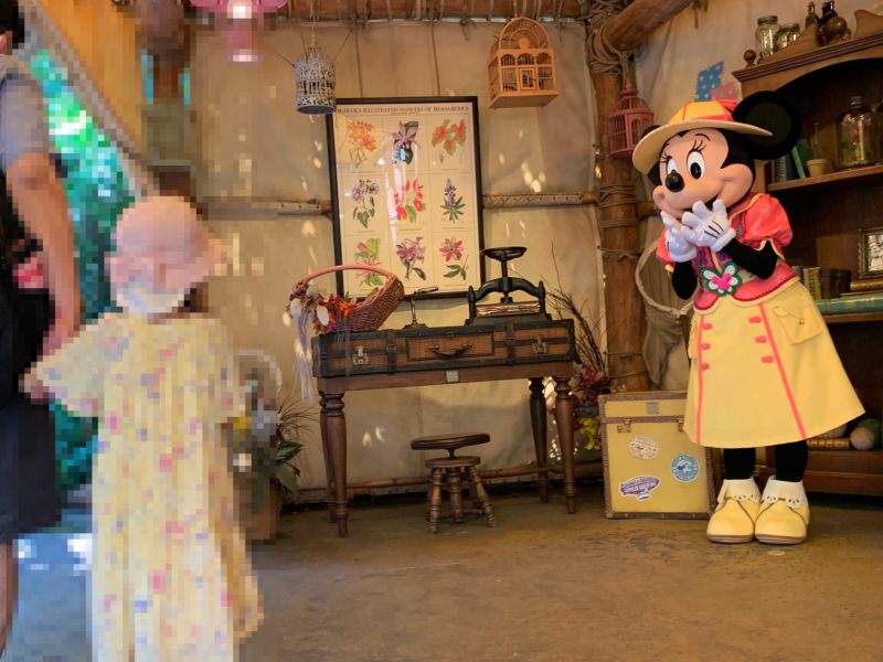 Rawiはミニーが好き。でも、ディズニーランドに行って、ミニーと写真を撮るときは急に静かになる。嬉しくて、恥ずかしくて、緊張しているみたい。手でハートを作って、ミニーに表現するので精一杯。ディズニーシーだけど、今年の夏に行ったときの写真。会うまでの騒がしい様子はなく、とても静か。