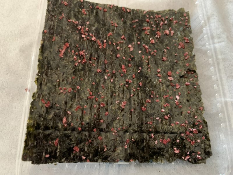 味は、やっぱり梅なので少し酸っぱい。Rawiにはどうかなと思ったのだけど、最初は酸っぱいと言ったものの、結局、全部食べてしまいました。ただ、山本海苔店の具付きのりは美味しいんだけど、子供はうまくご飯を巻くことが出来ないのが少し欠点。割れやすいんですよね。あと、このサイズも悪くないんだけど、この半分だと、少し食べやすいんだけどな(自分で割ればいいんだけど)。